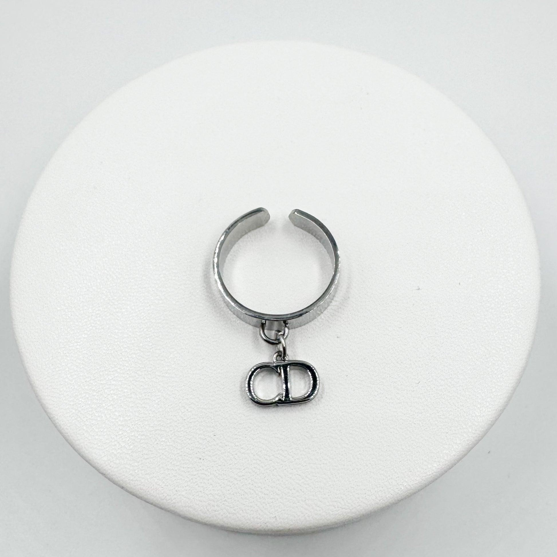 Logo de 1,2 cm monté sur une bague taille ajustable en acier inoxydable.