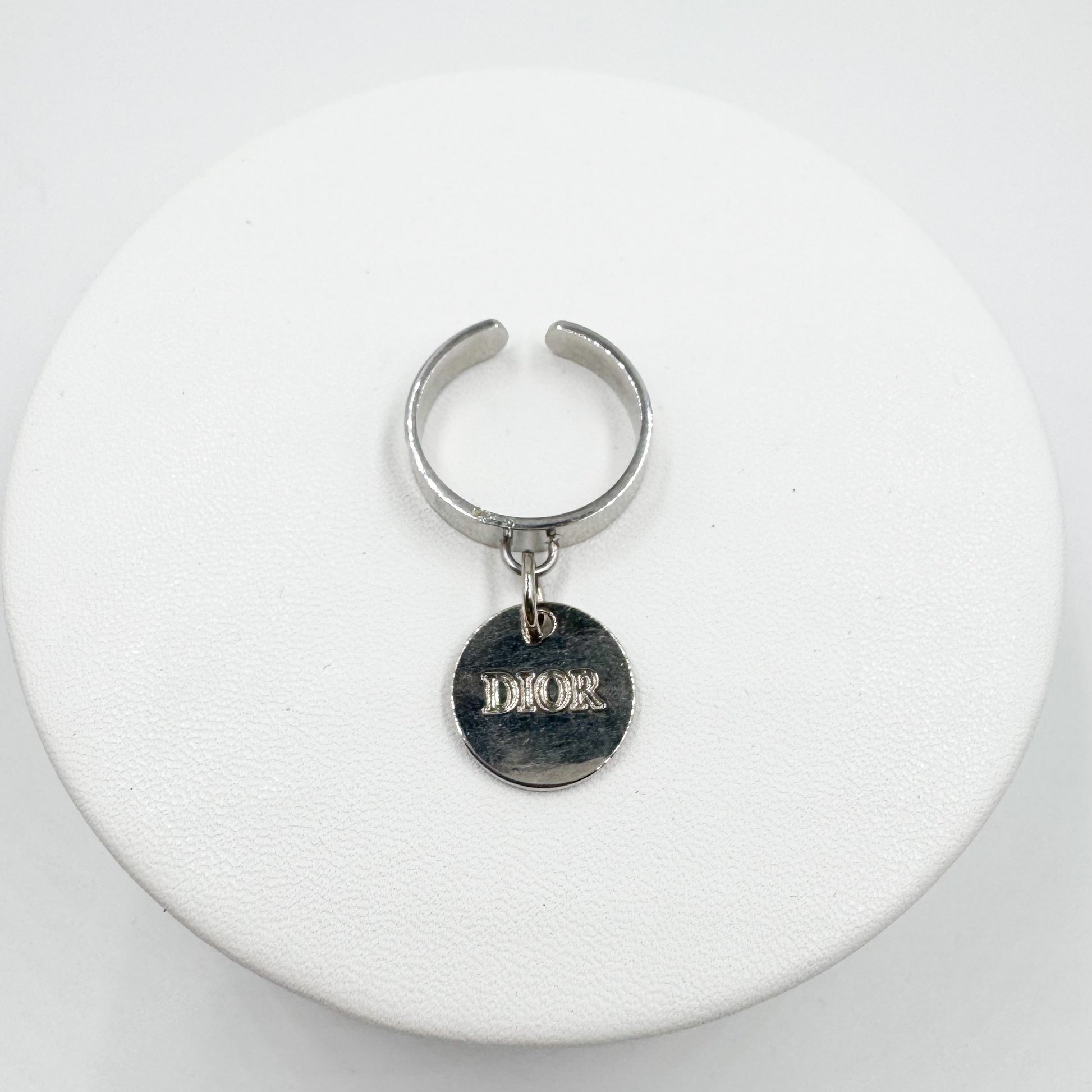 Logo de 1,5 cm monté sur une bague taille ajustable en acier inoxydable.