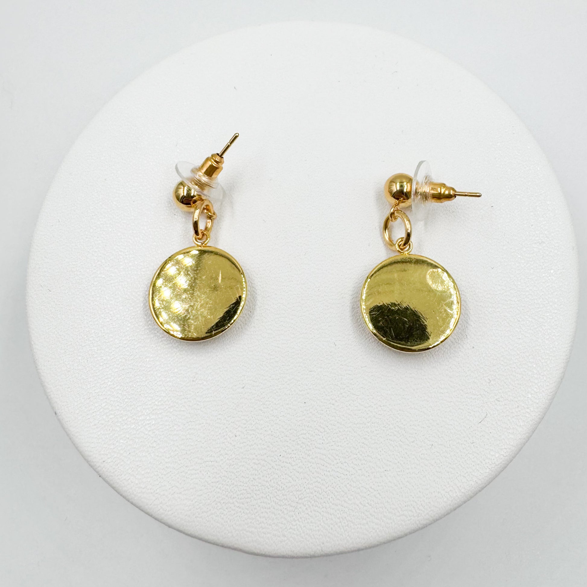 Boutons de 1,5 cm montés sur des boucles d’oreilles en acier .