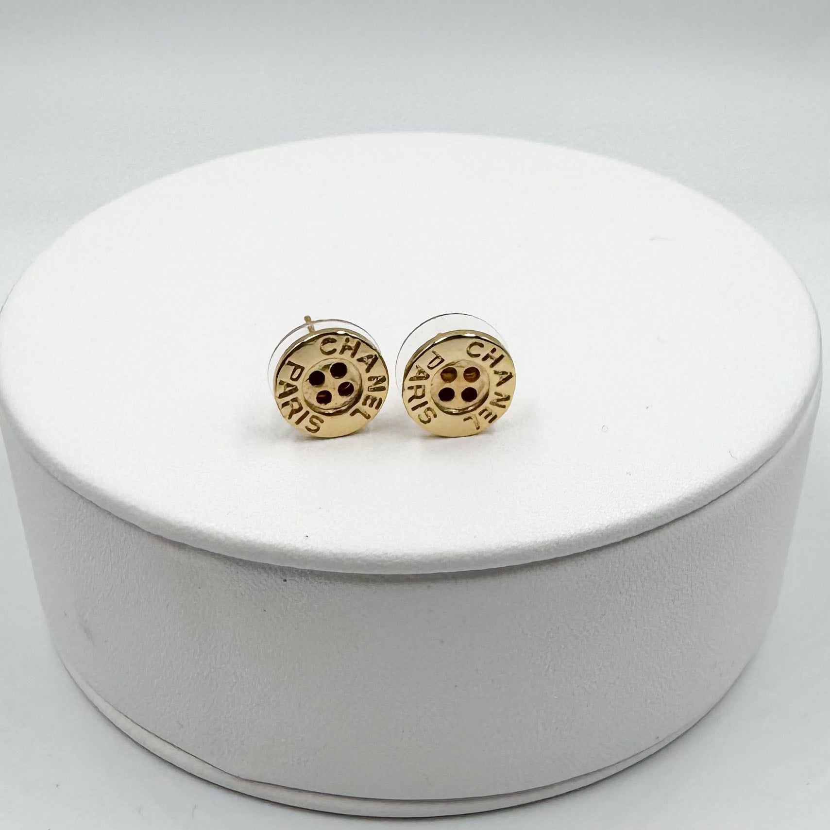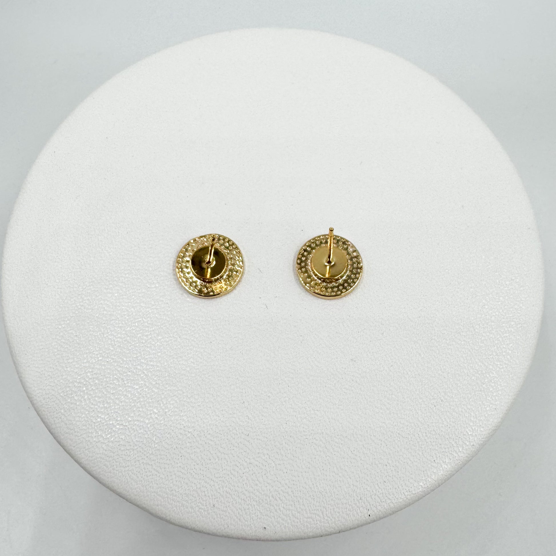 Boutons de 1,2 cm montés sur des boucles d’oreilles en acier inoxydable.