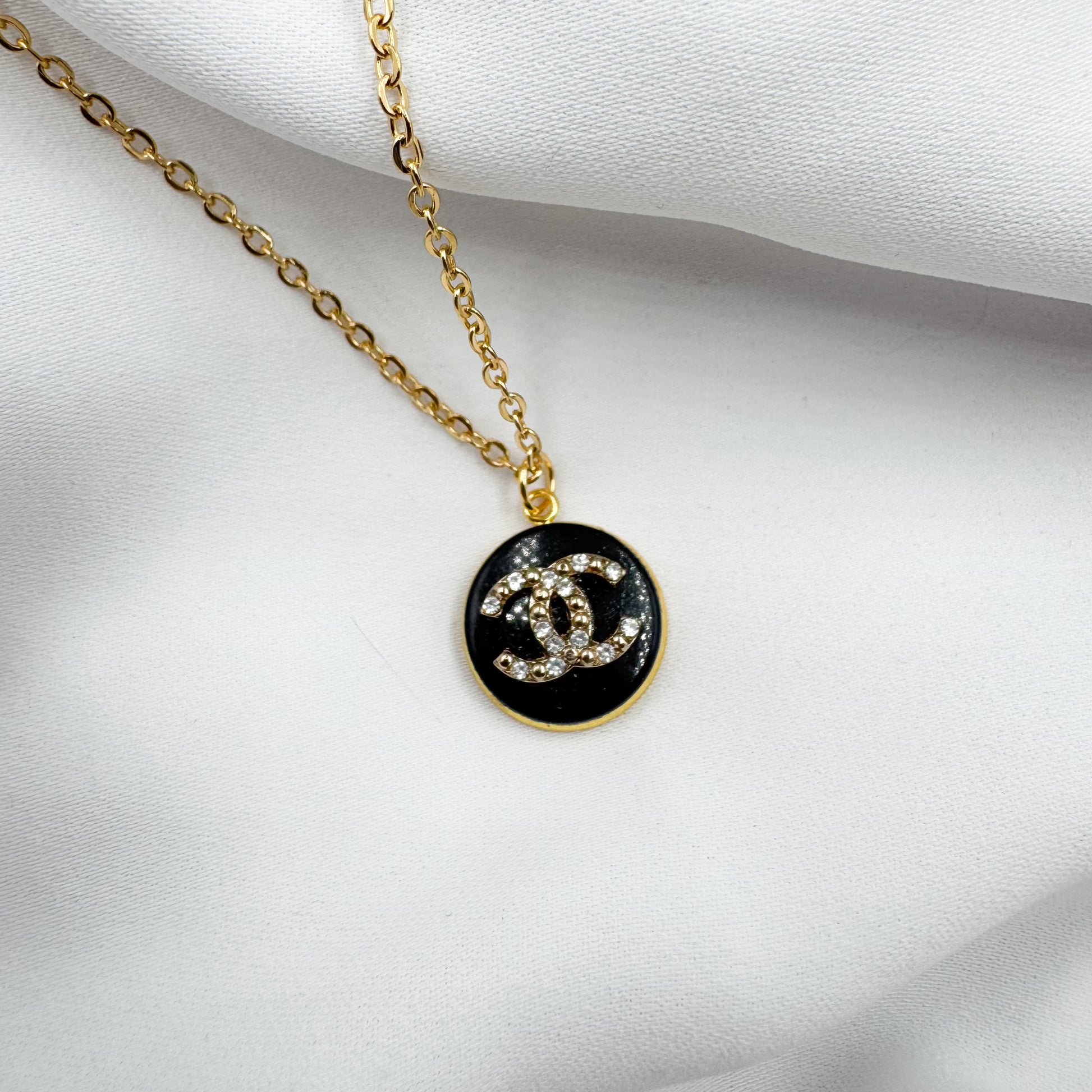 Bouton de 1,6 cm monté en collier sur une chaîne en acier inoxydable de 45 + 5 cm.