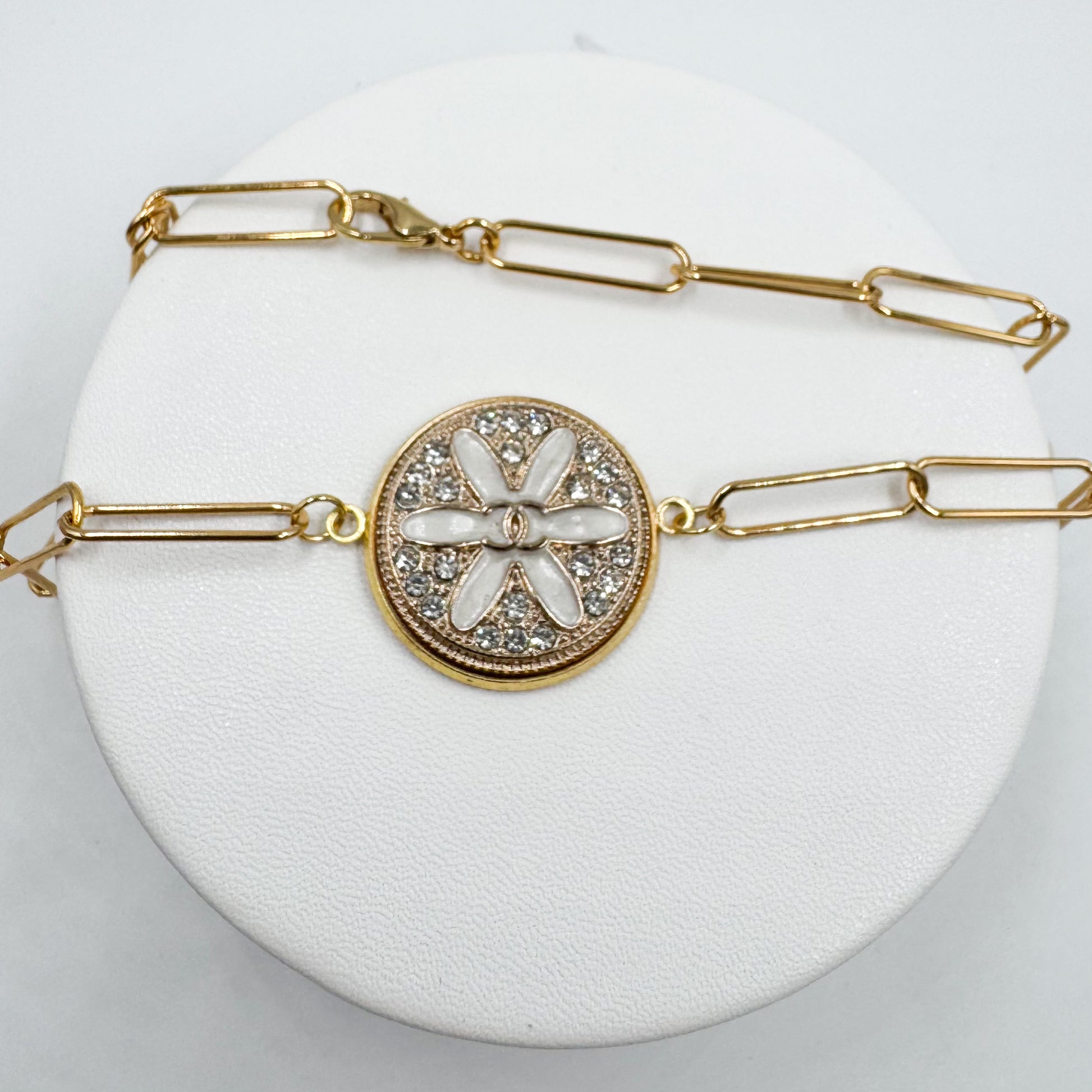 Bouton de 2,5 cm monté en collier sur une chaîne en acier inoxydable de 40 cm réglable.