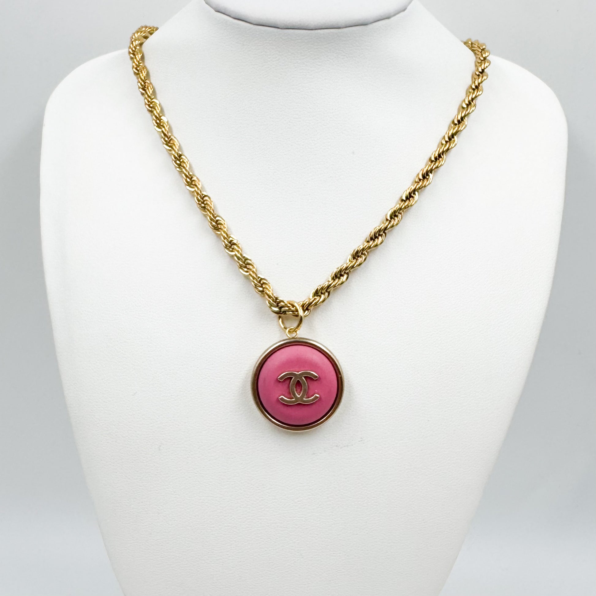 Bouton de 2,2 cm monté en collier sur une chaîne en acier inoxydable de 45 cm.