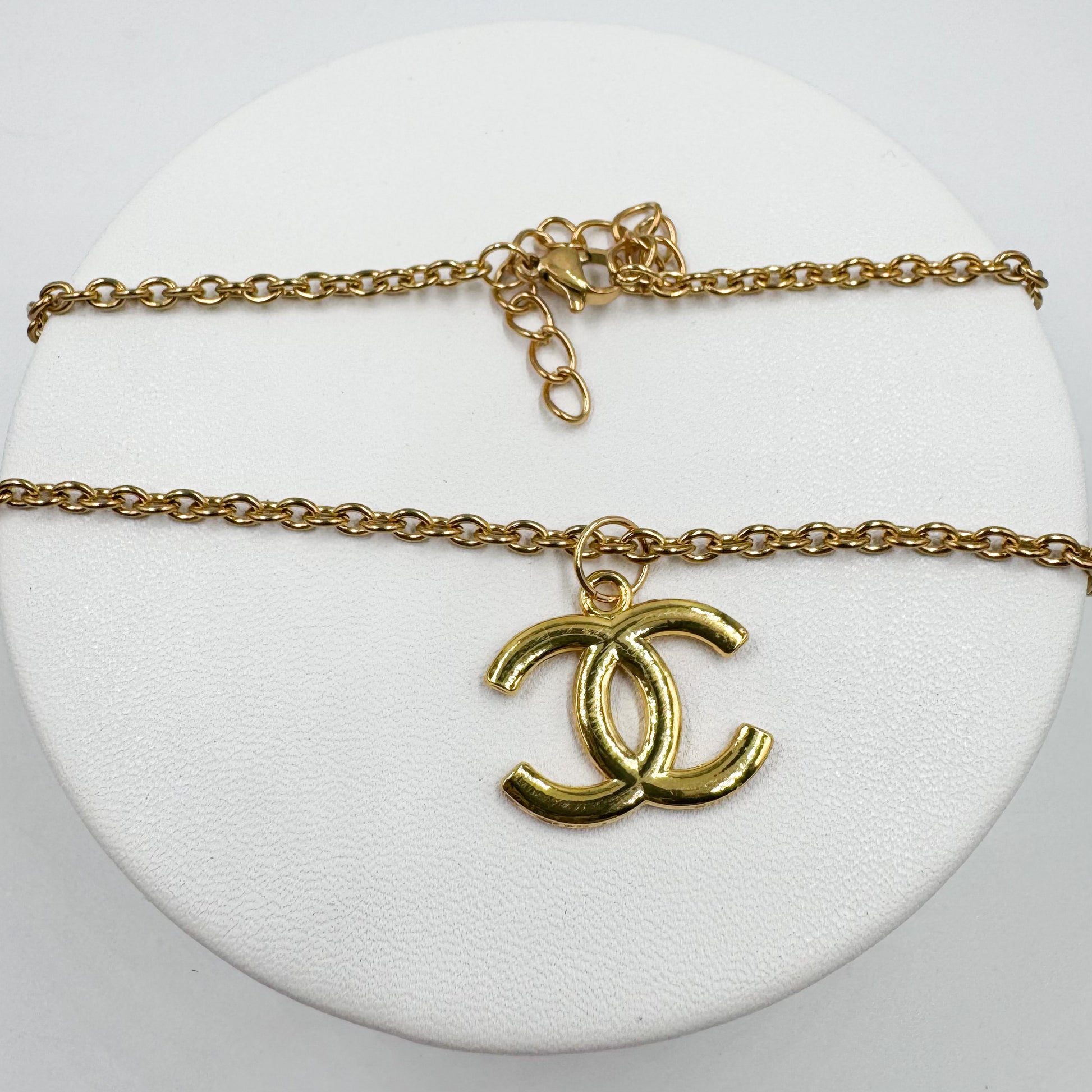 Logo de 2 cm monté en collier sur une chaîne en acier inoxydable de 45 + 5 cm.
